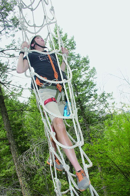 A climber tackles the first part of the high element rope course. The course provided numerous obstacles for the participants.