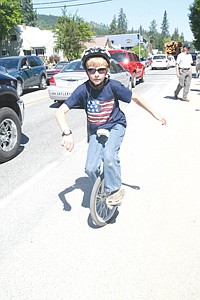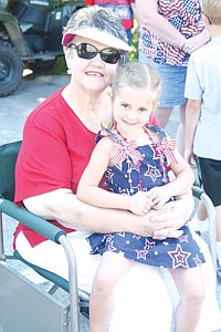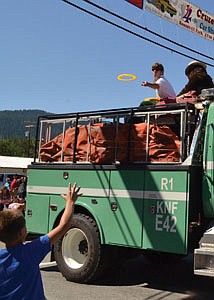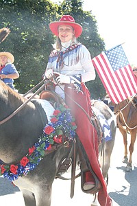 U.S. Highway 2 in Troy was lined with thousands of parade-goers Thursday as the weather cooperated, and the multitudes got to enjoy America’s 237th birthday party. The festive day was not without a note of solemnity as local firefighters commemorated all firefighters who had given their lives in the line of duty. However, this Fourth was especially painful with the death of 19 elite firefighters earlier this week. On this float, firefighters commemorated the fallen, and particularly this year with the Arizona state flag. At right, Kit Branch is decked out in red, white and blue and so is her steed, Bugsy. The Old-Fashioned Fourth of July Celebration included a presentation of Snow White at the Lincoln Theatre, a car show, fireworks, various craft, food, and other booths at Roosevelt Park.