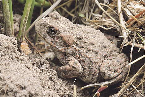 Larger than the spiders, grasshoppers and other insects I had already encountered, I inched closer and found a sand-covered toad. Digging with its back feet, the western toad was shimmying backwards into the soil.