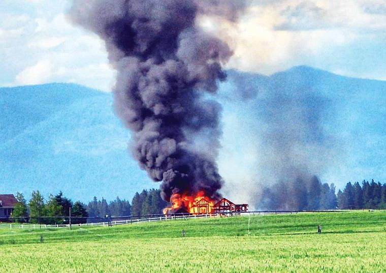 Smoke billows from a burning house north of Kalispell on Friday.