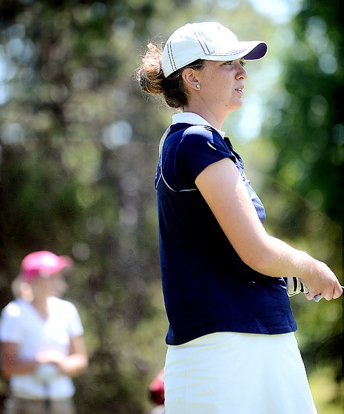 Jackie Mee tracks her shot during the 4th of July golf tournament at Whitefish Lake Golf Club on Saturday. (Brenda Ahearn/Daily Inter Lake)