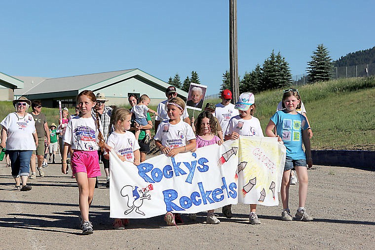 Members of the relay team "Rocky's Rockets" walk in the opening of the Relay for Life.