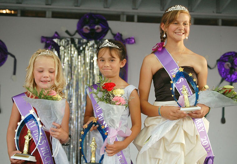 Contestants in the Miss Huckleberry Pageant line the stage in an earlier year. The competition hosts girls from 5 to 15 years of age.