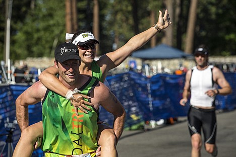 As her fiance Shaun Leary rounded the final corner of the Hayden Triathlon course, the bride-to-be hopped on his back and he carried her across the finish line. Cheers erupted through the crowd.