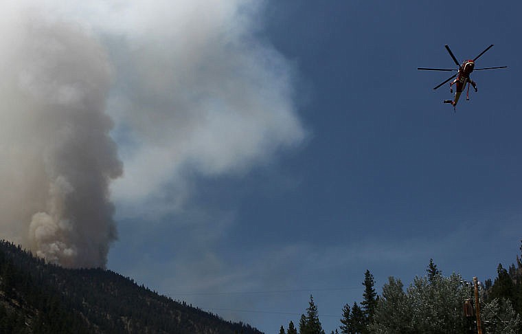 A Sikorsky Sky Crane heads towards the Clark Fork River to refill on Tuesday afternoon.