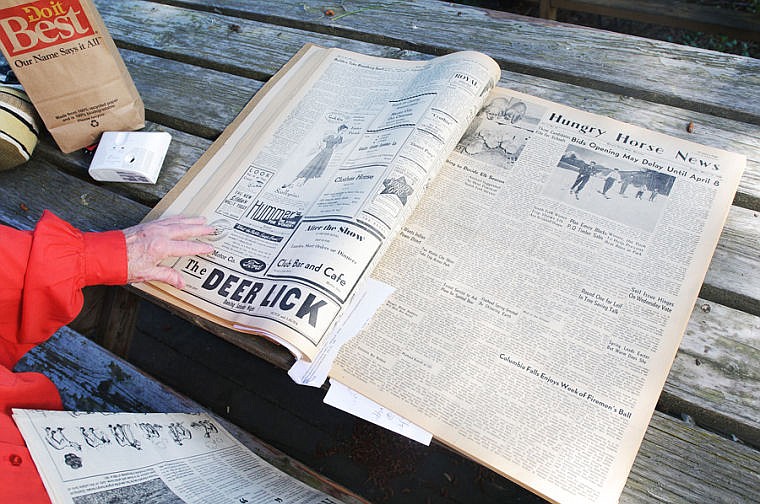 Gladys Shay shows off some of the first editions of the Hungry Horse News at her home in Columbia Falls. July 20, 2013 in Columbia Falls, Montana. (Patrick Cote/Daily Inter Lake)