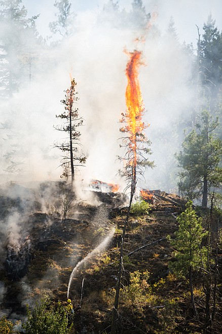 Fire crews from Kootenai County Fire and Rescue, Idaho Department of Lands and Hauser Fire joined forces to attack the blaze in steep terrain by 3:30 in the afternoon.