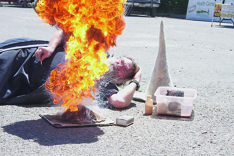 Garon Smith otherwise known as G. Whiz demonstrates some chemistry tricks at the annual Railroad Day celebration in Alberton. Smith is a Chemistry professor at the University of Montana.