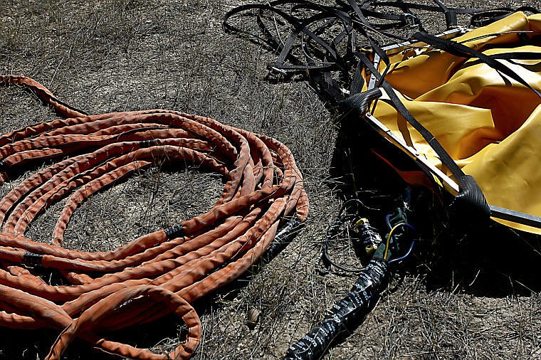 The helicopter utilizes a 900-gallon bucket with a snorkel. "You can fill it up in a shallow creek and suck all the water up into it," Firehawk Carded Mechanic Todd King said.