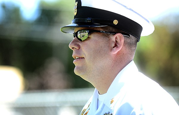Master Chief Petty Officer Robert Stout outside the Boys and Girls Club watching the children play on Wednesday afternoon in Columbia Falls. (Brenda Ahearn/Daily Inter Lake)