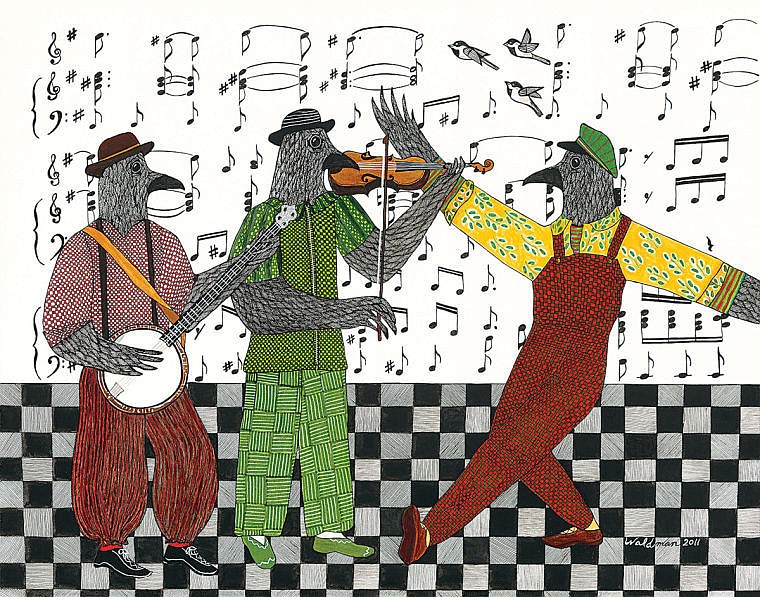 Waldman refers to herself as a “folk expressionist.” Her colorful, whimsical paintings meld negative space, elaborate, finely detailed patterns and metaphor. Her work can be seen at www.motherbirdart.com.