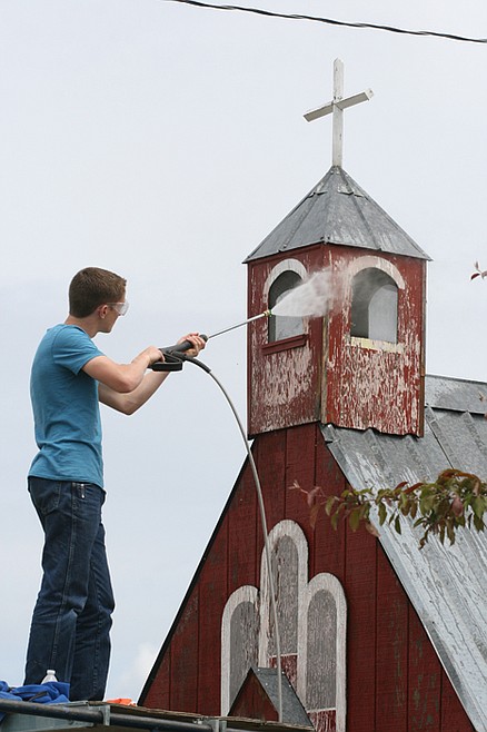 Rob Gaines, 15, power washed a small chapel adjacent other workers who were scraping paint.