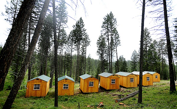 A row of new cabins sit nestled in the forest at the Boy Scouts Grizzly Base Camp near Bigfork on Friday, May 24. The funds for the cabins were provided by an anonymous donor. (Brenda Ahearn/Daily Inter Lake)