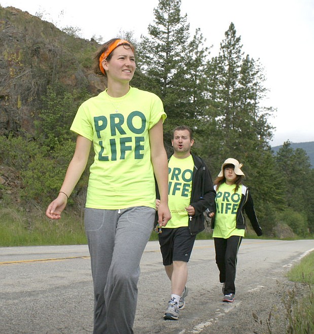 Hannah Derocher, Robert Jennings, and Bora Le trek across Sanders County during their march.