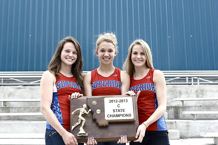 Superior Lady Bobcats Geneva Plakke, Nicole Stroot and Kinzie Cooper took home the school's first state track title.
