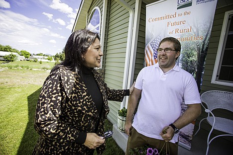 USDA Rural Development and Post Falls officials and local real estate agents gathered at Ginter's tidy home on Wednesday in celebration of Home Ownership Month. USDA Housing and Community Facilities Administrator Tammye Trevino presented Ginter with a hanging basket as a belated house-warming gift.