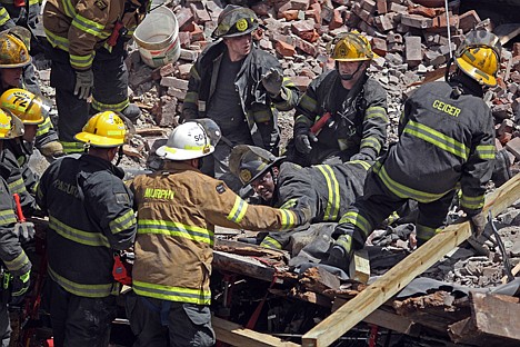 The collapse involved an empty building that once housed a first-floor sandwich shop and apartments above. The thrift shop was on one side. The other side was an adult bookstore and theater that had been taken down within the last few months.