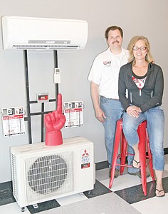 The Sweedmans of Formula Fabrication in their new showroom at 31936 Highway 2. The red No. 1 finger is the award for top in sales in Montana.