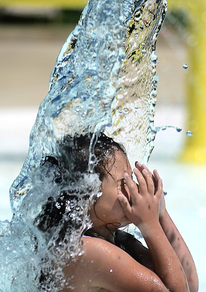 Gabriella Weber, 7, of Kalispell, plays in the in the water on Saturday, June 8, at the opening day of the Woodland Water Park in Kalispell. (Brenda Ahearn/Daily Inter Lake)