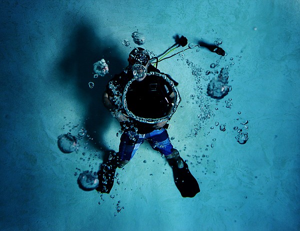Nick Cook in the dive pool on Friday, June 8, at Rock Bottom Diving north of Kalispell. (Brenda Ahearn/Daily Inter Lake)
