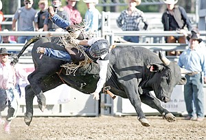 Shadrick Rich of St. Regis aboard the bull known as "Chumley."