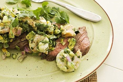 Pepper-lime flank steak with shrimp and salmon ceviche