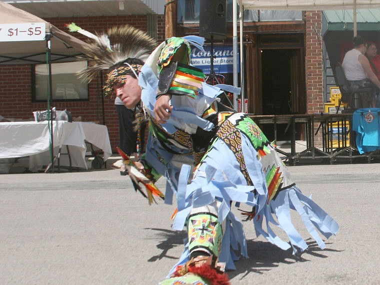 Dakota Gun Hammer performs a traditional Native American Dance during Homesteader Days.