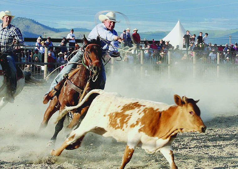 Levi and Paul Guenzler participated in the double mugging competition at the Hot Springs annual Homesteader's Rodeo on Saturday.