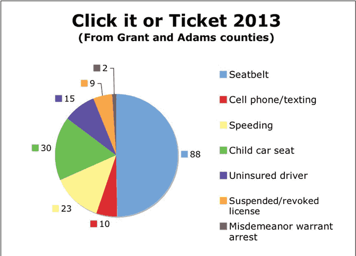 Between May 20 and June 2, more law enforcement patrolled Grant and Adams County roads looking for unbuckled drivers and passengers and motorists using cellphones or other electronic devices. The extra patrols are part of the Central Basin Traffic Safety Task Force.