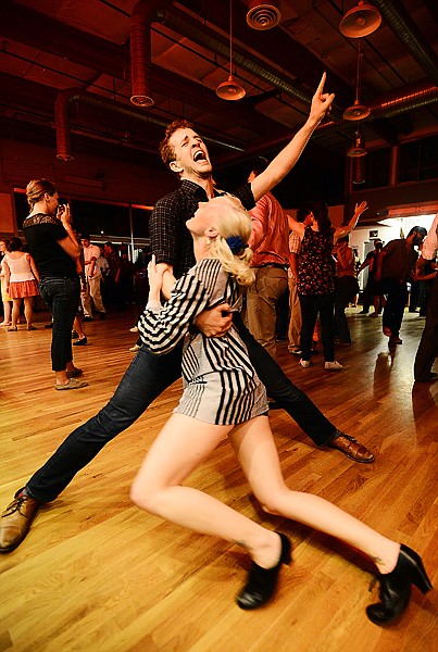 Ben White dances with Jenna Applegarth at Eastside Stomp in Seattle May 17. White and Applegarth have made several trips to teach in Montana.