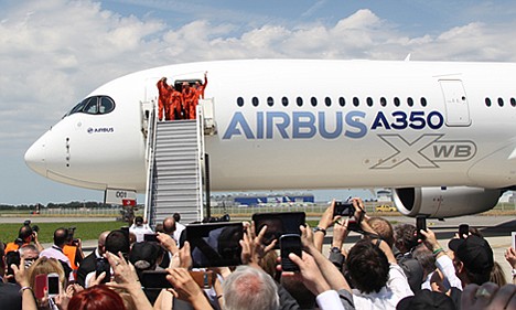 Airbus has 613 orders for the A350, and hopes Friday's flight will bring it momentum heading into next week's Paris Air Show, which is already shaping up as a battle of the wide-body planes.