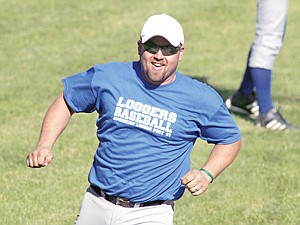 Legends lefty Brandon Laffoon is all smiles as he heads for home plate after an inside the park home run bottom of the fourth.