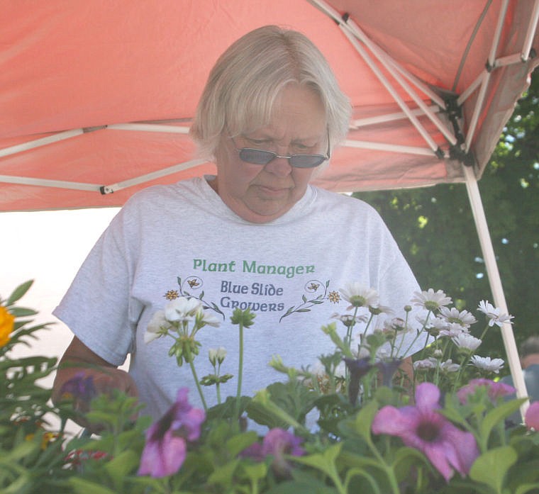 Sherry Benton waters her plants during the Thompson Falls Flower Show on Saturday. Benton won two best-in-show awards.