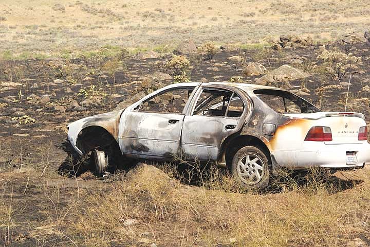 SOAP LAKE - A vehicle driven off the road Monday afternoon caught fire, causing a wildfire near Soap Lake.