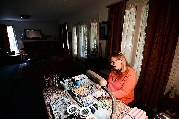 Carolyn Snyder demonstrates how she makes her beads on Thursday, June 20, at her home in Kalispell. (Brenda Ahearn/Daily Inter Lake)