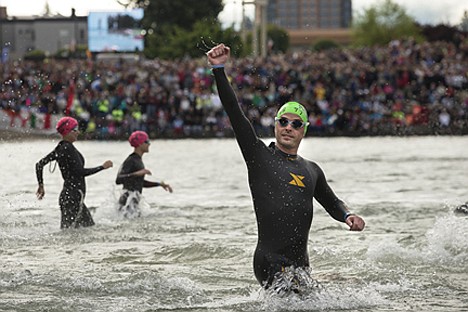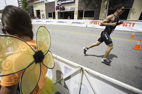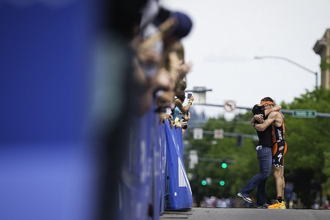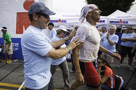 Derek Garcia of Post Falls was the first local male athlete to cross the finish line. His wife and sons greeted him with loving embraces. He kissed his 3-year-old on the head, as moisture dripped from his brow. It was Garcia's third Ironman. He said he trains about 25 hours a week all year 'round.