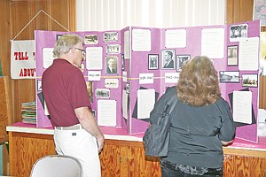 Ralph and Nancy Seeley review the historical poster of St. John Lutheran Church's long history. The event Sunday was capped off with a luncheon and concert.