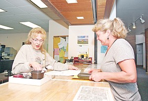 Deputy Clerk and Recorder Jeannie Dennis, left, Troy City Council candidate Kimberly Rowse right.