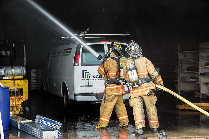 Moses Lake Fire Department and Grant County Fire District 5 responded to a fire about 11 a.m. at an Excel Dairy Service, Inc. storage building on West Broadway Avenue.