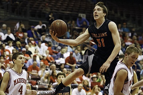 Joe Pfennigs came off the bench and gave Post Falls a lift in the second half, scoring seven points, and making three of the Trojans' five baskets of the half. Post Falls hung close until the shots stopped falling, and Madison pulled away at the free-throw line, finishing 19 for 21 from the line.
