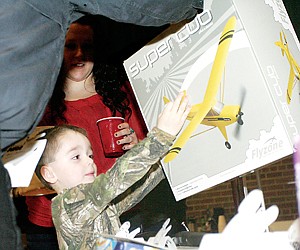 Brayson Orr, 4, wasted no time in making his choice for a radio-controlled airplane as his lucky number was drawn on the youth table.