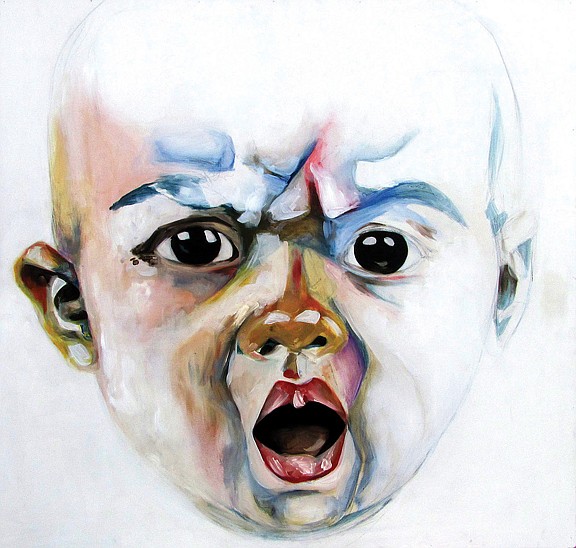 The 3-by-3-foot painting of a baby’s face making a judgmental expression, entitled “Judgmental Baby,” had been on display at the bar on Electric Ave. since December.
