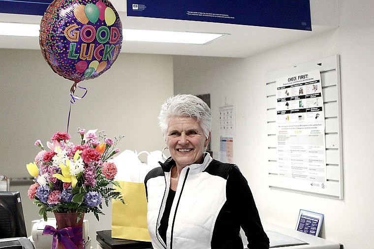Paula Mintz stands next to her flowers and gifts at the Superior Post Office, where she worked as a clerk for 15 years.