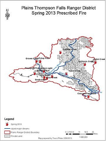 PLAINS/THOMPSON FALLS – Officials on the Plains/Thompson Falls Ranger District have announced that they will initiate the 2013 spring burning program when the prescribed burning conditions are met in the coming weeks, and would like to inform the public as to where these burns will occur.