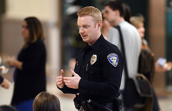 Officer Jason Parce, the School Resource Officer at Glacier High School, on Friday, March 8, in Kalispell. (Brenda Ahearn/Daily Inter Lake)