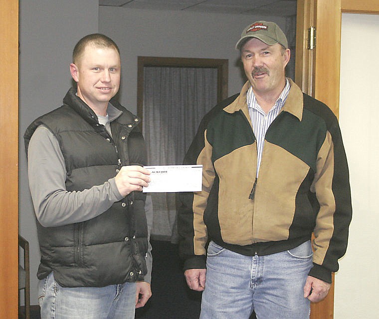 WSA President Cory Ovitt accepts the check from Jim Blush of Blackfoot Communications on March 5.