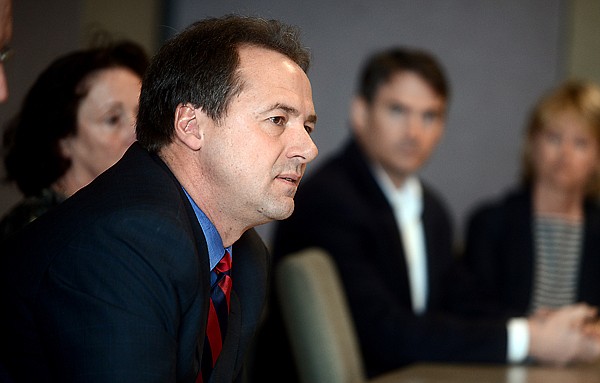 Gov. Steve Bullock talks about the Access Health Montana bill during a roundtable discussion Thursday at Kalispell Regional Medical Center.