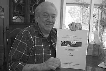 Carl Haywood holds up a copy of his second book, "Howse House," which focuses on Joseph Howse and the fur trade.