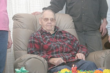 Resident of Plains, Stan Risland, gets ready to blow out his candles for his 95th birthday celebration.