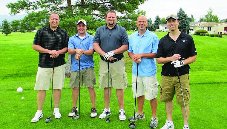 A Flathead Area Young Professionals Annual Golf Tournament held in August 2012 at Village Greens raised money for Big Brothers Big Sisters of Flathead County. Those pictured represent the range of professional involvement in the young professionals organization. From left are: Dave Creamer, Intermountain (community services for children); John Mark Creamer, Ron Incoronato & Co. (construction); Seth Campbell, FedEx; Matt Porrovecchio, Bigfork High School; and Chris Ostrem, Applied Materials.